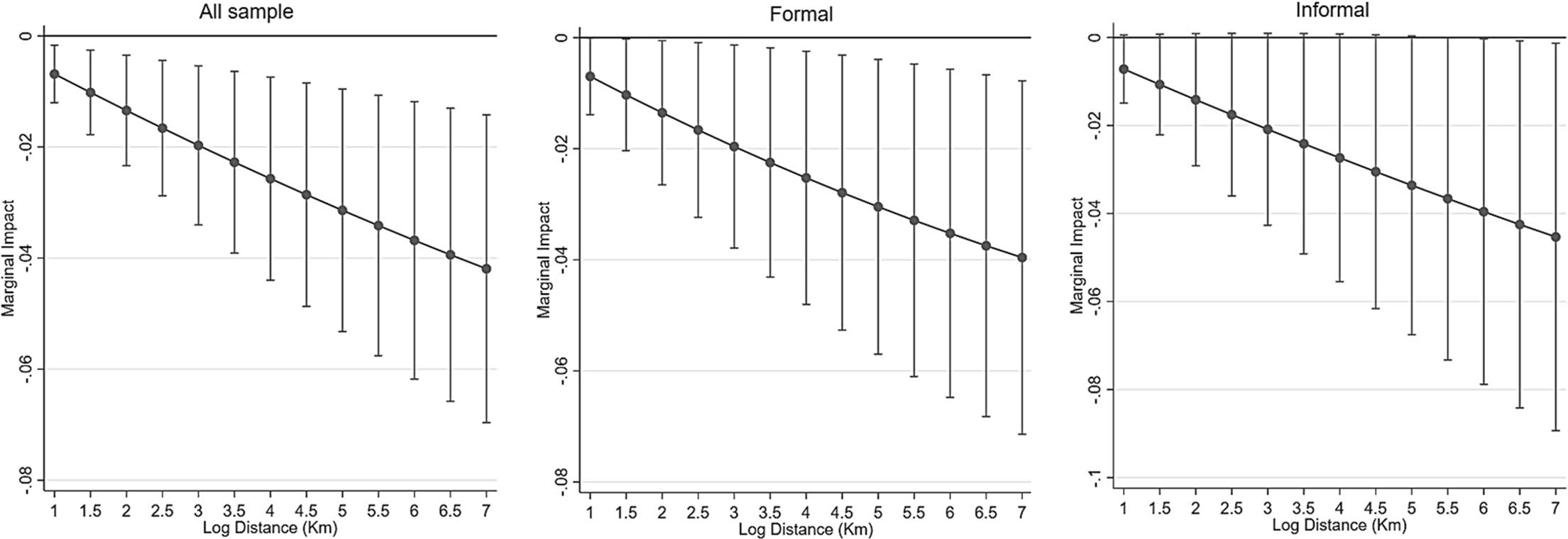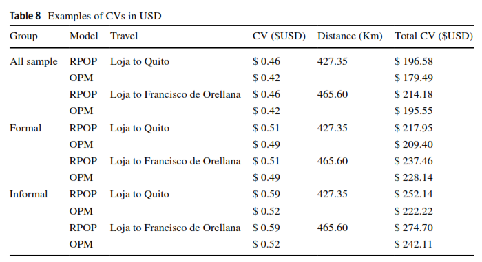 Además, encontramos que los trabajadores formales deben ser compensados a $ 0,51 USD y los trabajadores informales deben ser compensados a $ 0,59 USD por kilómetro migrado para mitigar el impacto negativo de la migración. Estos resultados tienen importantes implicaciones políticas, por ejemplo, la necesidad de promover políticas laborales que fomenten el bienestar laboral y compensen los efectos negativos de la migración de larga distancia.